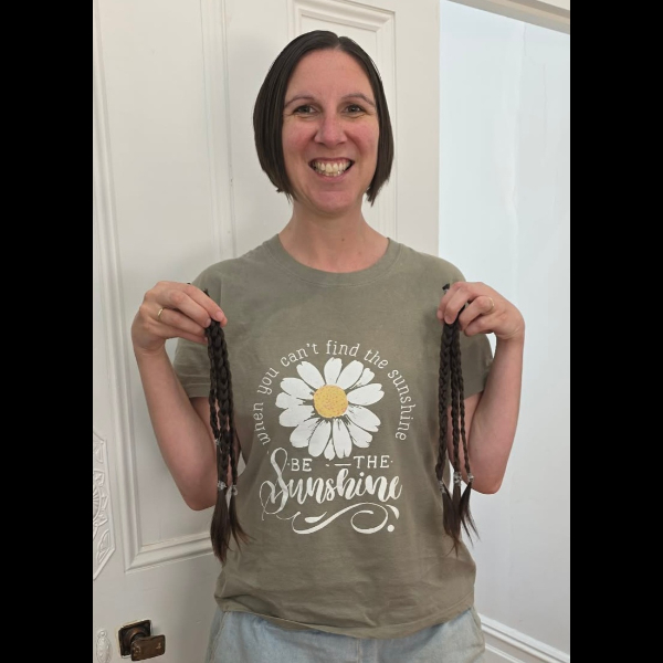 So proud of you Sally, beautiful hair and heart, and always thinking of others. xx