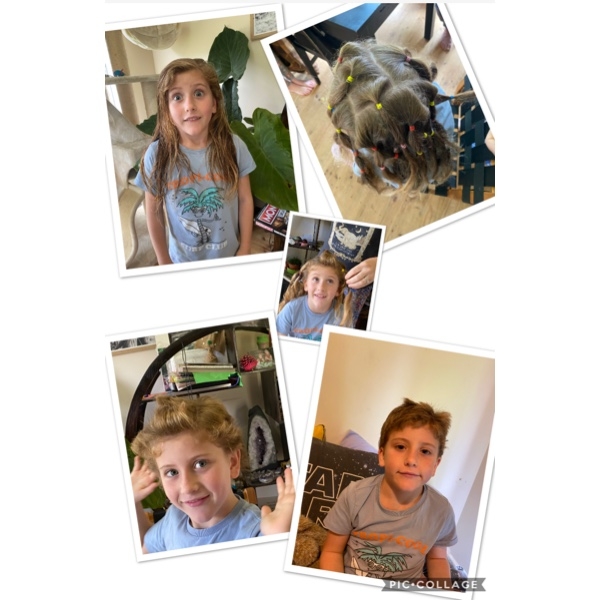 two wonderful thoughtful people who are sharing their beautiful hair Love you Evvi & Sonny for caring about others love G'ma & Doc